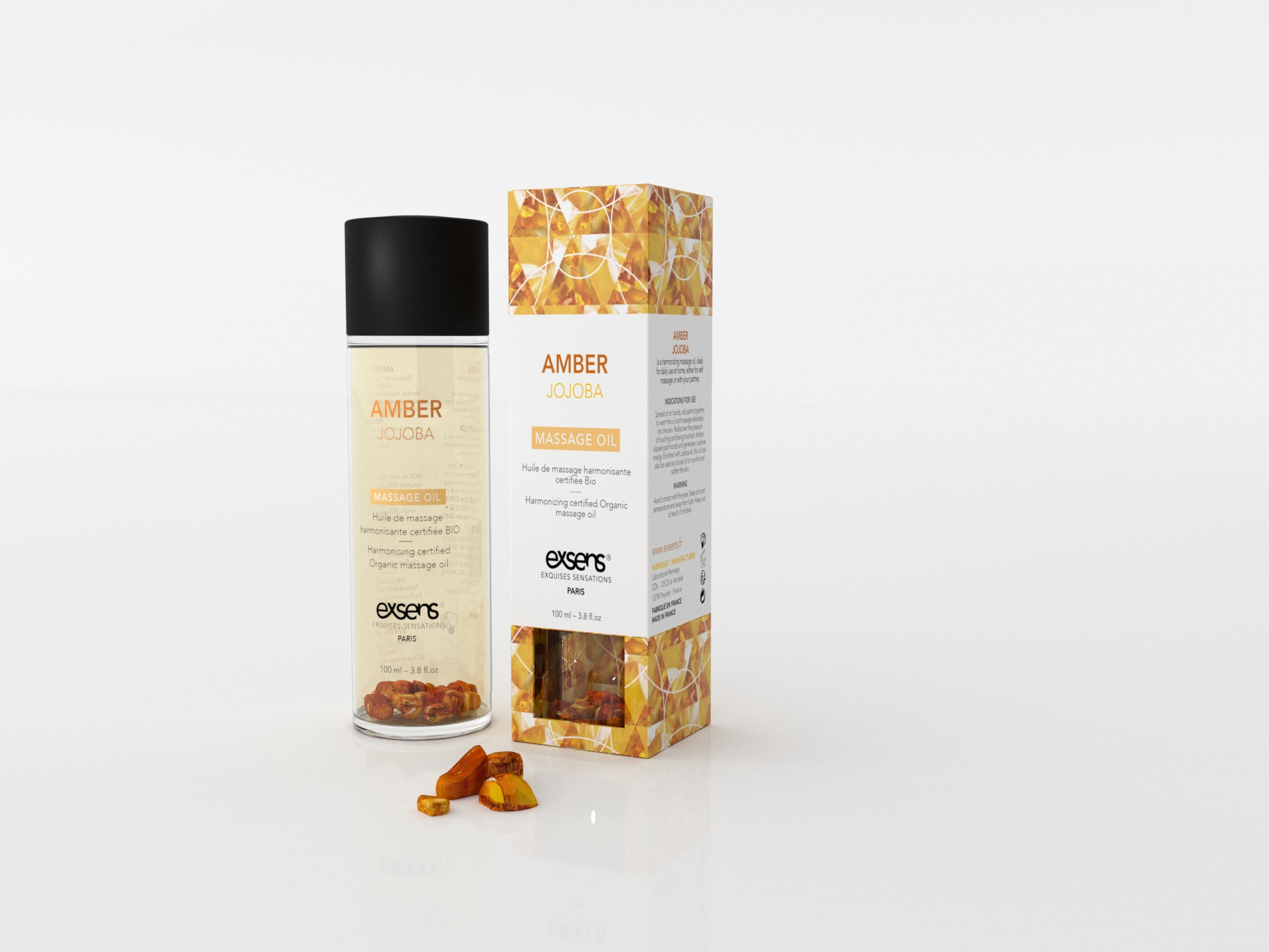 Amber Jojoba Oil revitalizes and promotes balance. Jojoba oil softens and nourishes your skin and is filled with important nutrients like vitamin E and B. Amber crystals help bring body and mind together, in harmony. Rediscover peace of mind, body and skin with Exsens Amber Jojoba Oil.